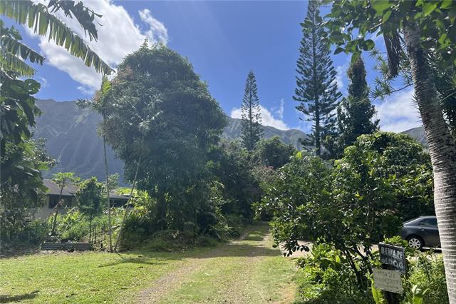 A MUST SEE! A Rare opportunity to buy a large R-5 zoned property in Kahaluu. Look into the potential; additional homes... a care home... on a level to gentle slope lot. This 3 bedroom, 2 bath home is located in the Ahuimanu area and has views of the Koolau Mountains. The property is enveloped with mature plants and fruit trees.