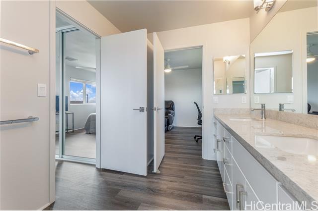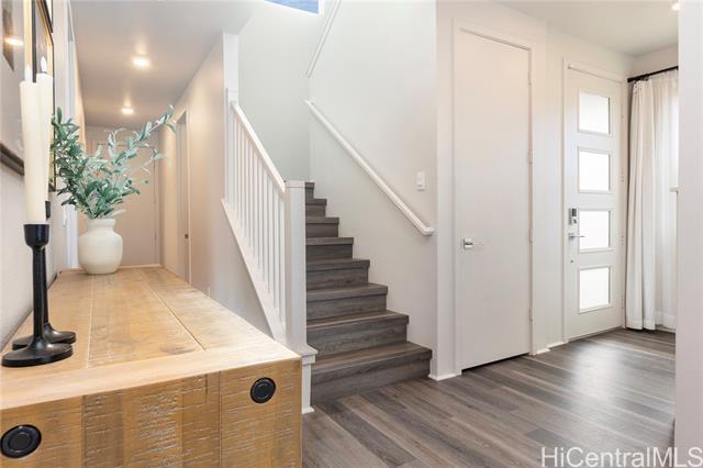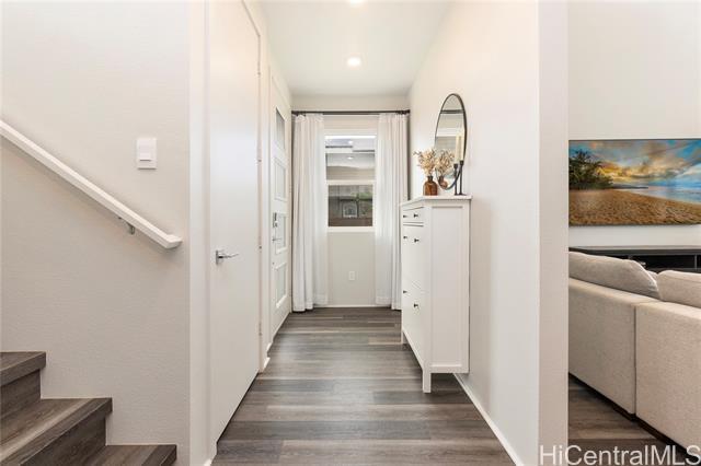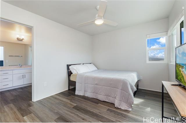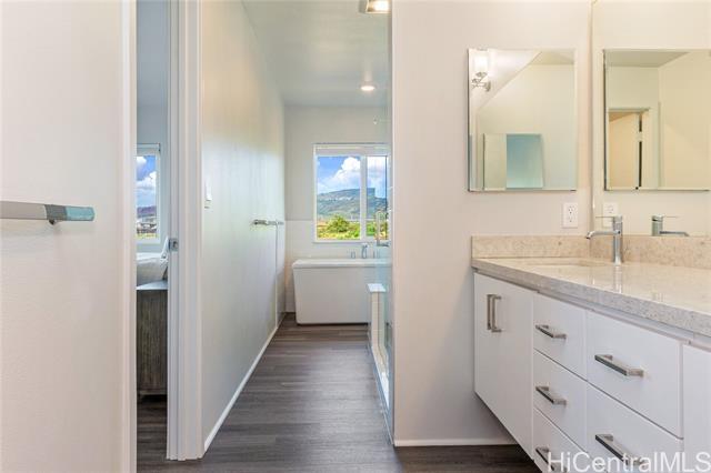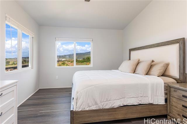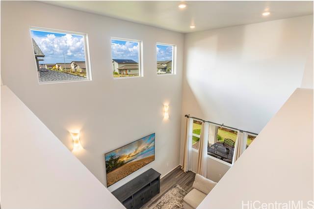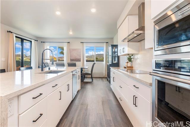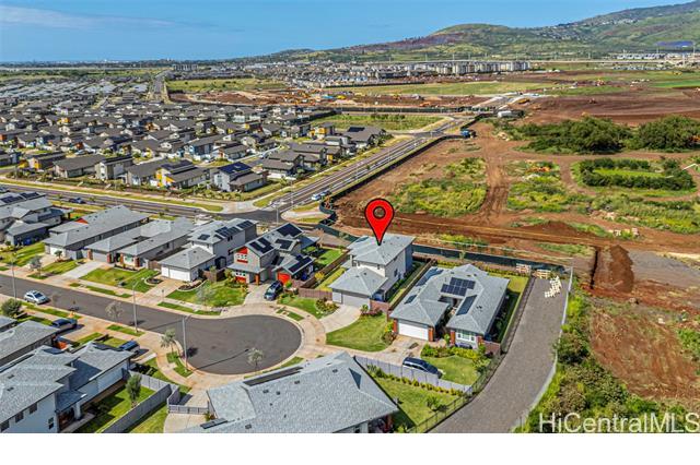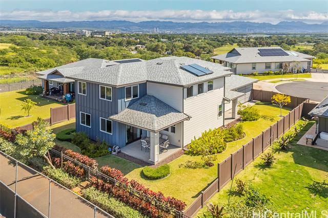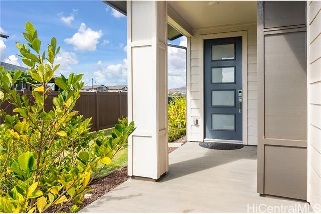 Rarely available “Bluffs” home in Hoopili located on a desirable cul de sac! This luxurious 4 bedroom, 3.5 bath residence offers 2,372 sq ft of thoughtfully designed living space with an open concept floor plan. Highly sought after layout featuring a full bedroom & bathroom on the 1st floor, ideal for multi-generational living, guests, or a home office. An oversized 2 car garage provides ample room for storage. Step inside to a dramatic 2 story vaulted living room filled with natural light from expansive windows. The gourmet kitchen is a true centerpiece, showcasing a quartz waterfall island, walk in pantry, & stainless steel appliances. The kitchen flows seamlessly into the spacious great room & dining area, creating the perfect setting for everyday living or entertaining. The 1st floor also includes a powder room & dedicated laundry room. Upstairs, you’ll find 3 additional bedrooms, including an impressive primary suite with vaulted ceilings, walk in shower and closet, dual vanities, freestanding soaking tub, & bidet ready seat. Enjoy a beautifully landscaped and fully fenced yard that's ideal for entertaining, pets, or simply relaxing outdoors. Put this on your must see list!