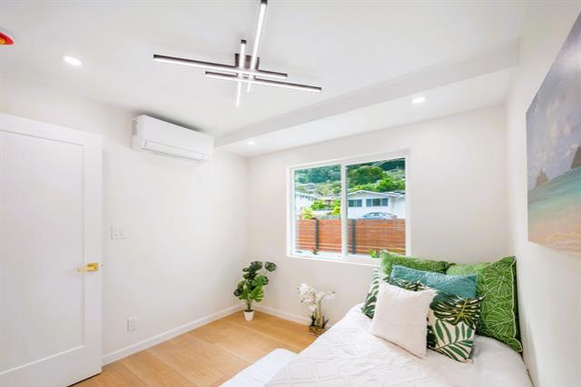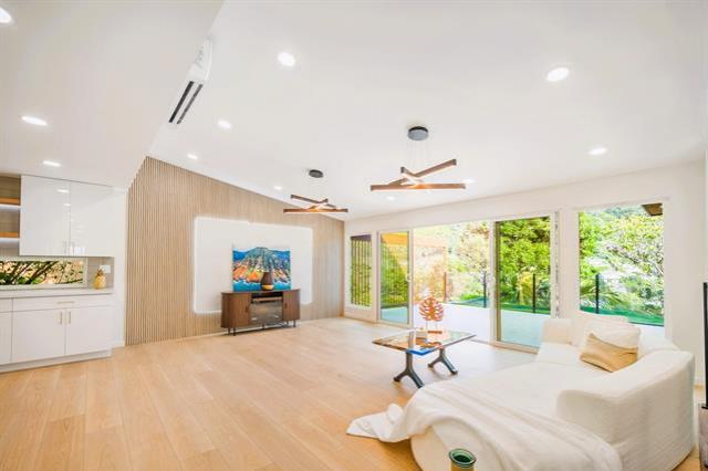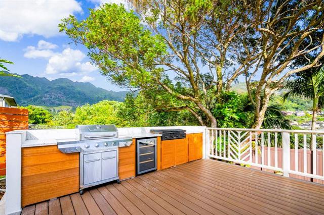 Nestled in the heart of Manoa, this estate epitomizes modern elegance. Constructed by an award-winning design builder, the home combines contemporary luxury with the stunning natural beauty of the majestic green valley. Comprehensive 2026 renovations & additions feature EV charger, 7 bdrms and 5 ba, seamlessly merging modern sophistication with the lush, tropical landscape. Sleek luxury plank flooring flows throughout, beginning in a high-end chef’s kitchen showcasing a massive quartz waterfall island, LED lighting, and a deep upscale sink with breezy views. A dramatic wall art leads to the lower level, an entertainment haven, with a full wet bar, premium appliances, and a spacious media or family room. Bottom floor has two separate entries, perfect for multi-generational living. 5 exquisitely tiled bathrooms act as a spa-like retreat with modern and trendy fixtures and finishes. The second-story primary room and lanai provide majestic mountain views. The lower patio leads to a premier decked entertainment area. True showstoppers include: outdoor kitchen with mini fridge, custom barbecue, and a sunken hot tub, set against a backdrop of mature tropical vegetation. Photos enhanced.