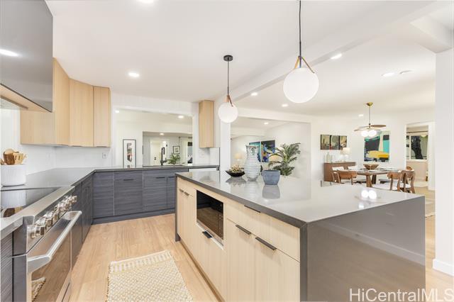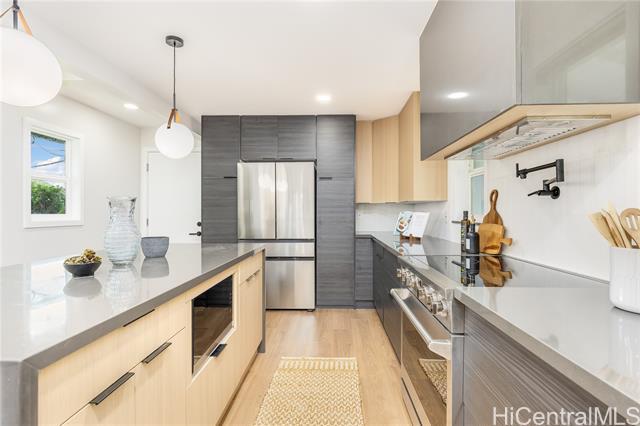 Nestled in the heart of coveted Manoa, 2846 Lowrey Avenue offers the perfect blend of classic island charm and modern comfort. Surrounded by lush greenery, cool valley breezes, and soothing sounds of Manoa stream, this beautifully upgraded home captures the peaceful lifestyle that makes the Manoa area so desirable. Enjoy a fully renovated spacious and functional layout filled with natural light, thoughtfully updated interiors, oversized primary bedroom, new stainless steel appliances, vinyl flooring, quartz countertops, custom cabinetry, energy & noise efficient windows, recessed lights, split ACs, 2 car garage, laundry/pantry room, landscaped surroundings, and seamless indoor-outdoor living with a covered outdoor patio. The generous yard space provides room to garden, entertain, or simply relax and take in the tranquil mountain backdrop. Located next to top-rated schools, Manoa Valley District Park, Manoa Marketplace, shopping & dining options, yet tucked away on a side street that feels worlds apart. Easy access to town while enjoying the serenity & convenience of Manoa living. Offers due Mon March 16 at 5pm, visit one of our many open houses or schedule a showing with us today!