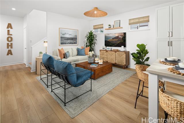 Available Now! Award winning new construction, this 3 bed, 2.5 bath home with additional family room has 9' ceilings, Designer white shaker cabinets, corian counters, Kohler fixtures and so much more! Energy saving features include Central AC, Seer2 (16+), 80 gallon solar hot water, spray foam insulation, Gutters, Fencing, LED lighting, Digital thermostat, Insulated garage door, EV ready, Low-E vinyl windows and Energy star upgraded stainless steel appliances. Seller is offering a 3% CREDIT to be used for closing costs, buy downs, points/interest rates when financing through Gentry Home Loans. The Ka'ulu community is in a fabulous location, close to beaches, restaurants, shopping, entertainment the freeway and so much more. Come and check out all the VIP features! The model homes are open from 10-4:30 Tues-Sun, and 12-4:30 on Mondays. Pictures are of model home, interior appointments may vary from pictures. Lot size is estimated.