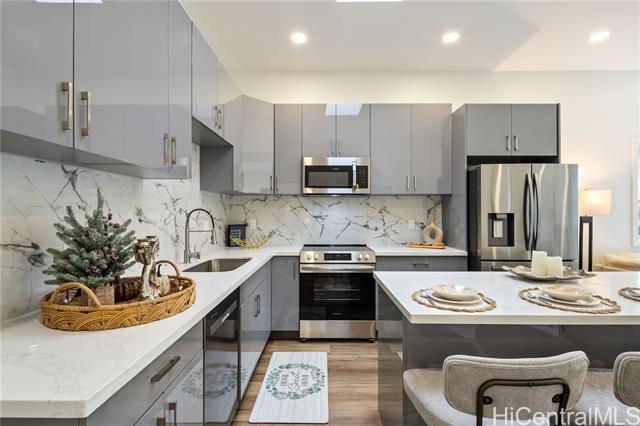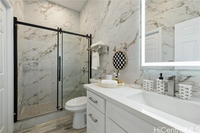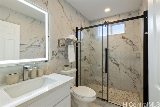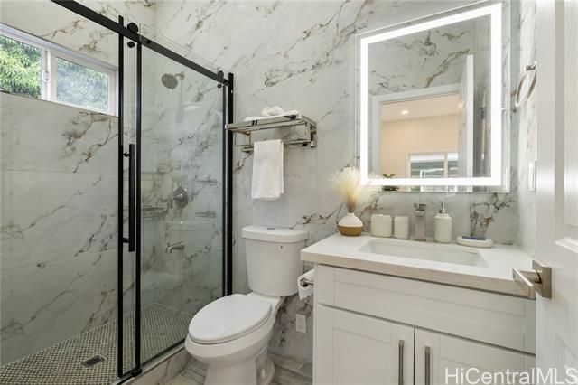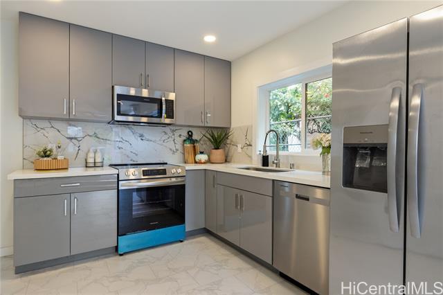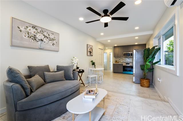 This extensively redesigned and renovated Honolulu property offers an almost brand-new living experience in a highly convenient core location. All systems have been upgraded, including electrical (200A), plumbing, structural framing, roofing, and windows, with full building permits obtained. The ADU features a separate electric meter, providing flexibility for extended family, rental, or home office use. The property is secured with a rolling gate and fence around the house. Both the main house and ADU include new appliances, washers and dryers, and Mitsubishi split-system AC. Outdoor spaces are thoughtfully designed with landscaped tropical gardens, private patios, and pathways, creating a serene resort-style Hawaiian ambiance. The master suite boasts 9.5-ft ceilings, creating an open and airy atmosphere. Ideally located near university districts, shopping, dining, and major transportation routes, it offers convenience for commuting and daily living. Flexible layout supports multi-generational living or potential rental income. Additional features include a solar water heater, upgraded finishes, modern fixtures, and attention to detail throughout, ensuring comfort and style.