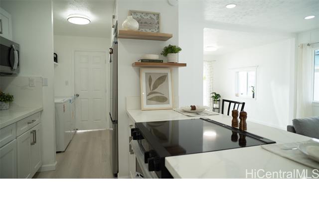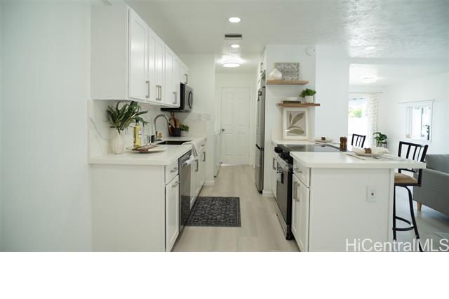 Discover modern island living at its finest in this beautifully fully renovated home. Completely refreshed from top to bottom, this gem offers a fresh, contemporary feel with high-end updates throughout—no detail has been overlooked. Step inside to cool comfort with central air conditioning and sleek luxury vinyl plank flooring that flows seamlessly through the open living spaces. The heart of the home shines with an all-new kitchen featuring stainless steel appliances, perfect for everyday meals or entertaining aloha-style. Outside, enjoy enhanced privacy and security with a brand-new vinyl fence, new gated entry, and a professional security system for peace of mind. The freshly paved driveway adds curb appeal and convenience, while the property's location offers easy access to Waianae's stunning beaches, hiking trails, local markets, and the laid-back West Side vibe. Ideal for first-time buyers, families, or those seeking a low-maintenance, move-in-ready retreat on Oahu's Leeward Coast. Don't miss this rare opportunity!