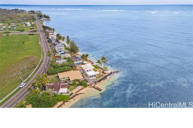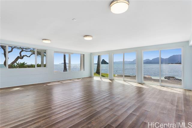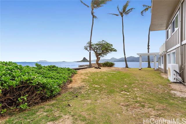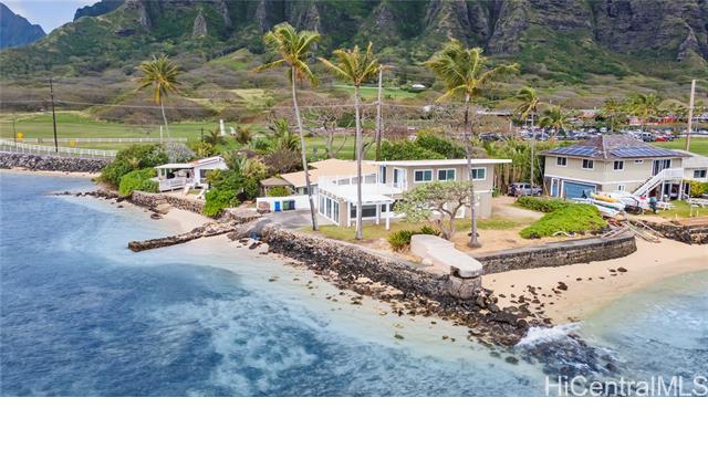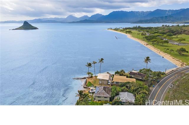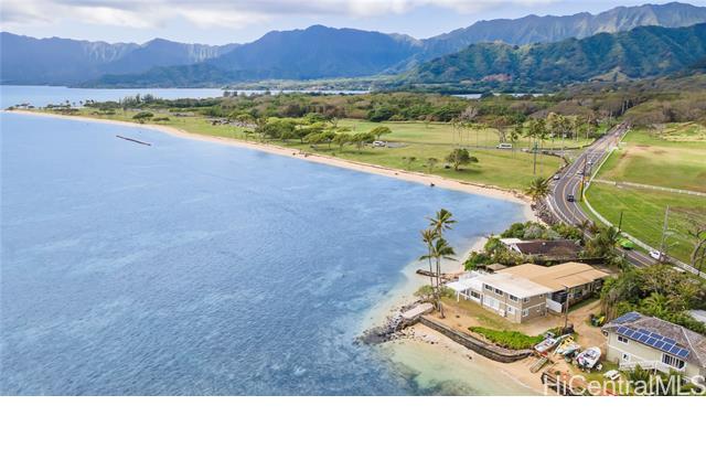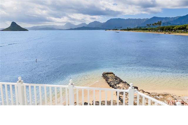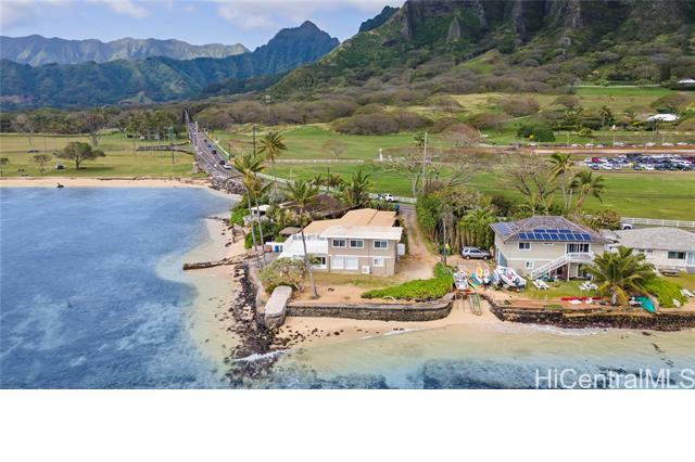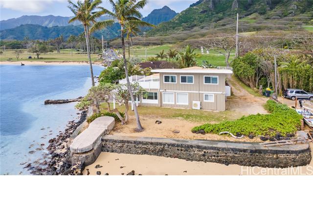 AMAZING, UNIQUE, AND RARE OCEANFRONT PROPERTY WITH GORGEOUS PANORAMIC VIEWS!! Positioned on an oceanfront point with water frontage on two sides, this very special lot boasts expansive unobstructed views of legendary Chinaman's Hat island, Kaneohe Bay, the majestic Koolau Mountain Range, beautiful sandy Kualoa Regional (Beach) Park, and more! Enjoy exceptional natural privacy, direct ocean access, and a private boat ramp. On a private lane off Kamehameha Hwy. across from wonderful Kualoa Ranch. Move right in - freshly painted with a kitchen renovation in 2018. Enclosed downstairs lanai, upstairs beautiful deck, both perfect for entertaining. 1 bed/1 bath downstairs, 2 bed/1 bath upstairs. SPLIT A/C UNITS IN EACH ROOM! Within about half an hour drive to Kaneohe Marine Base, less to Kaneohe Town. Interior size and number of bedrooms differ from tax record. MUST SEE TODAY!