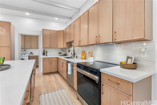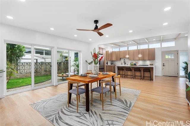 Experience modern island living in this extensively renovated Coconut Grove residence, tucked away at the end of a peaceful residential street, just minutes to Kailua Town and world-famous beaches. This single-level 3 bed 2 bath home offers comfort and style with high ceilings and a bright open-concept design. The stunning kitchen features a large island, new appliances, custom cabinetry, and luxury vinyl flooring throughout. A brand new roof adds lasting value and peace of mind. The primary suite includes a spa-inspired soaking tub and shower combo. Designed for true indoor-outdoor island living, step outside to your newly sodded and fully fenced yard, perfect for relaxing evenings, weekend gatherings, pets at play, and enjoying the island breeze year-round.