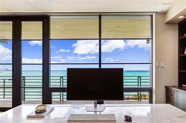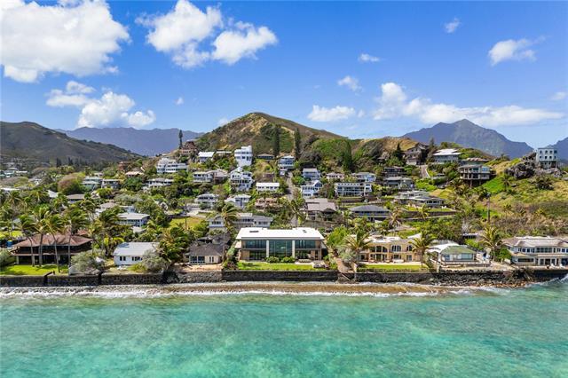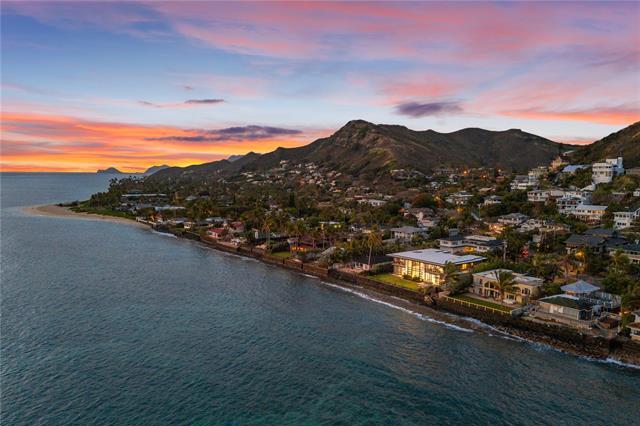 Step into a realm where modern architectural brilliance meets the captivating allure of oceanfront living! Perfectly poised between Kailua & Lanikai Beach, this oceanfront masterpiece is an exquisite retreat. Wake up to mesmerizing sunrises over sparkling turquoise waters as sea turtles glide by & kite surfers float across the horizon. Sweeping ocean & mountain views envelop every corner of the home with an open-concept design, soaring ceilings & abundant natural light. The chef’s kitchen showcases incredible craftsmanship w/ custom mahogany cabinetry, custom doors, a bespoke range hood & top-tier appliances from SubZero, Wolf, Bosch & Miele. The private spa courtyard enveloped by lush tropical greenery, enhances the sense of tranquility, while finishes like travertine plank flooring, warm veined marble countertops & crushed coral walls exude timeless sophistication. Modern conveniences like automated window shades, Toto bidets, water filtration, backup generator, video security, Sonos sound & climate-control make for effortless living. Enjoy premier golf, dining & fitness at Mid-Pacific Country Club, with easy access to HNL International airport, downtown Honolulu & Waikiki.