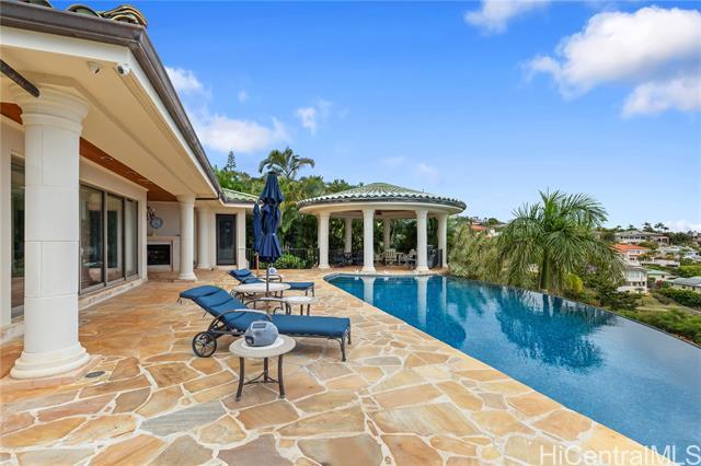 Hawaii Loa Ridge is one of Oahu’s most prestigious residential enclaves. Privately positioned within the exclusive gated community of The Pointe, this remarkable estate captures commanding ocean vistas and sweeping panoramas stretching toward Koko Head Crater. Designed by architect Mark Lively, the five-bedroom, five-and-a-half-bath Mediterranean masterpiece reflects timeless architectural elegance and exceptional craftsmanship throughout. The main level unfolds with a gracious formal dining room, an expansive family room, and a sumptuous primary suite retreat. A grand living room opens seamlessly to the resort-style pool terrace, where shimmering ocean views create an unforgettable backdrop. Upstairs, an additional en-suite bedroom, a secondary lounge, and two adjoining bedrooms provide both comfort and flexibility. A private maid’s quarters is discreetly integrated for added convenience. An extraordinary offering in one of Honolulu’s most coveted neighborhoods, this residence epitomizes elevated island living — where scale, privacy, and breathtaking horizons converge in effortless sophistication. Property to be conveyed "As Is".