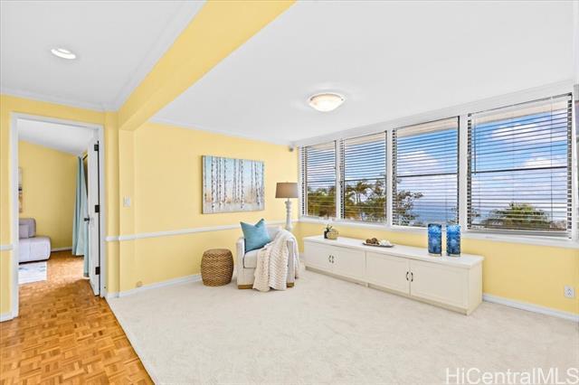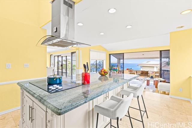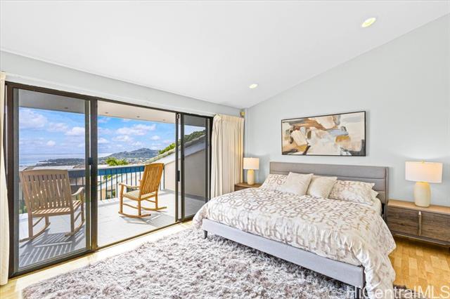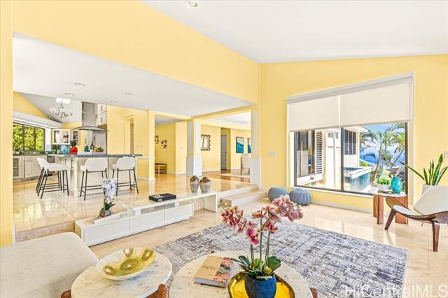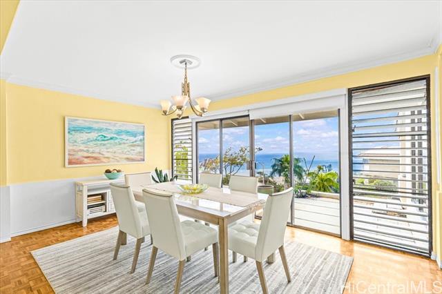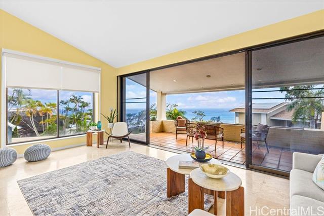 Stunning Ocean and Diamond Head views highlight this residence located halfway up the prestigious and highly sought after Waialae Iki ridge. Offering 5bedrooms, 5 baths plus a den/office. This spacious home features 3 primary suites with breathtaking views. The thoughtful layout includes 2 primary suites on the upper level, 2 additional bedrooms and a den/office on the main level and a private in-law suite with it's own separate entrance, wet bar and living area. With nearly 4,200 sqft of interior space, this home represents exceptional value. Enjoy the convenience to Kahala Mall, Waialae Country Club, Kahala resorts, shops and restaurants, all just minutes away.