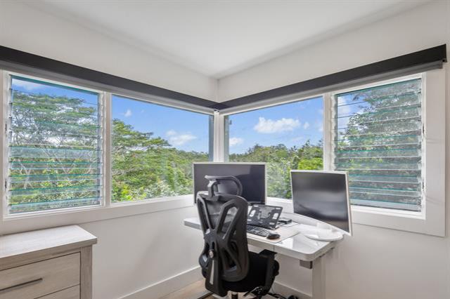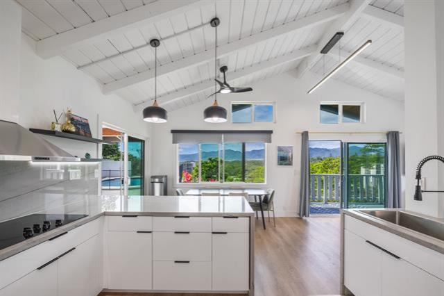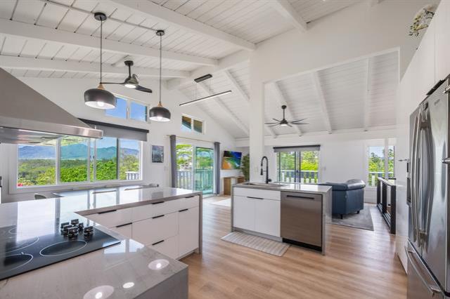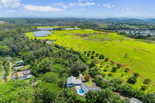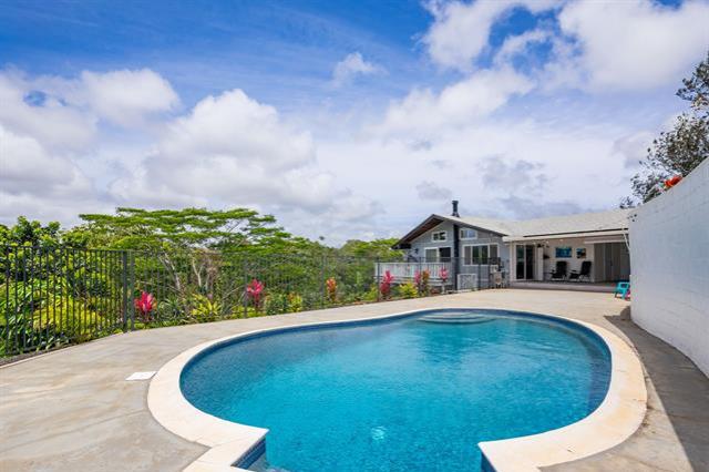 Perched above Launani Valley in a private gated community, this exceptional Mililani estate offers rare 1-acre privacy with sweeping valley and sunset views over the Waianae mountains. Designed for effortless island living, this home blends spacious interiors with incredible outdoor living. Vaulted ceilings create a bright, open feel in the main living areas, while the fully renovated kitchen features quartz countertops, brand-new appliances, custom cabinetry, and smart lighting. The primary suite opens directly to a wraparound lanai, where panoramic valley views become part of your everyday routine. Outside, the home transforms into a private retreat. A saltwater pool overlooking the valley, expansive entertaining space, and outdoor shower create the perfect setting for sunset gatherings and weekend relaxation. Additional highlights include split AC throughout, a newly remodeled spa-inspired primary bath with soaking tub and walk-in shower, and plenty of parking. A rare opportunity to own space, privacy, and unforgettable views in the heart of Mililani. Contact Sellers Agent for link to the video tour!