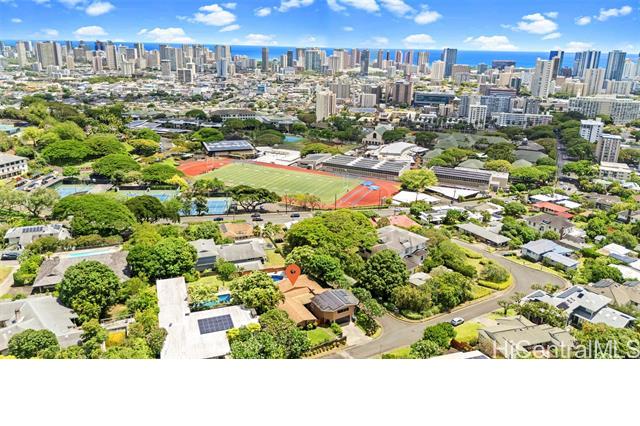 Beautifully maintained 4BD/5BA estate in one of Honolulu’s most sought-after neighborhood. Just minutes from Punahou, Maryknoll, and Hanahauoli, this home combines privacy with everyday convenience. Enjoy seamless indoor/outdoor living with a covered lanai, tiled pool, and lush front and back yards with city and mountain views. All bedrooms feature en-suite baths and new split A/C. Gourmet kitchen with custom cabinetry, honed granite countertops, and top-of-the-line Thermador appliances, including 2 refrigerators, large freezer, and 6-burner dual-fuel range. Spacious walk-in pantry and 32 owned PV panels provide efficiency and ample storage.Move-in ready and thoughtfully designed, this is a rare opportunity in a premier location.