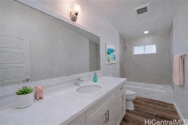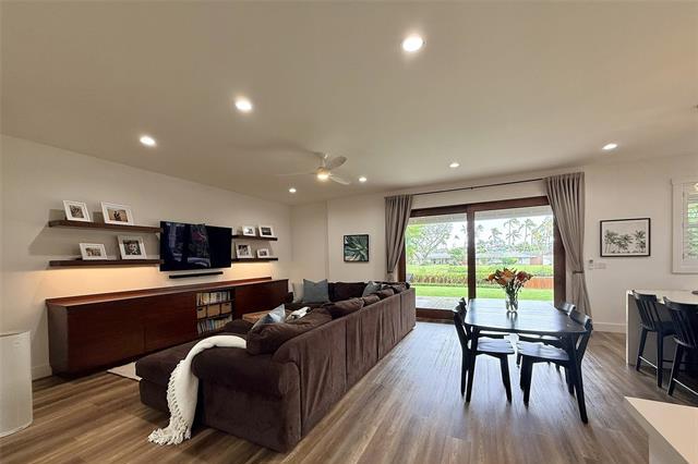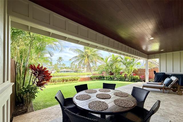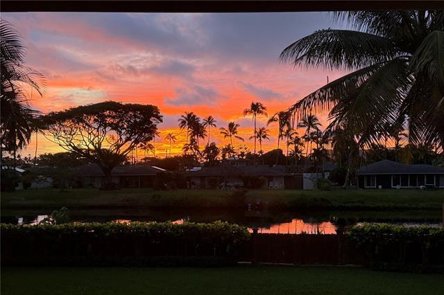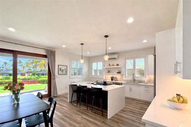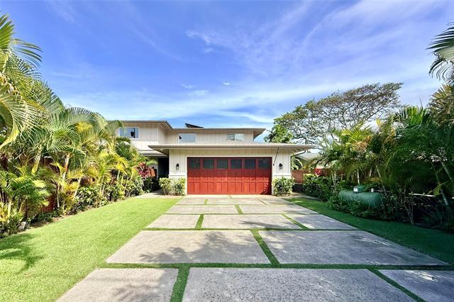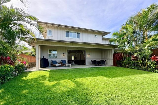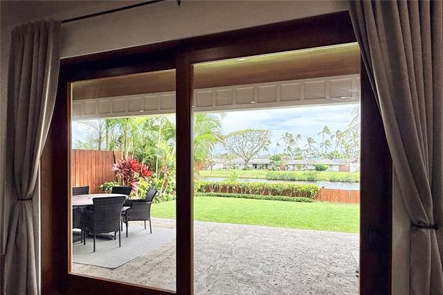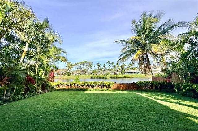 Island luxury abounds in this newer-built attached single-family residence in Kailua. Privately situated and tucked behind a gated driveway, the home welcomes you with an expansive parking area, and oversized two-car garage. Inside, soaring ceilings and an open entry foyer set the tone for a light-filled, spacious interior. The open-concept living area features a built-in entertainment center and flows seamlessly to a covered lanai, where tranquil canal views and soft sunrise light create a serene daily backdrop over the lush landscaping. The kitchen is appointed with quartz countertops and refined finishes, perfect for both entertaining and everyday living. Upstairs, the primary suite offers a peaceful retreat with a large walk-in closet and a glass-enclosed shower, with dual vanities. Upstairs, two additional bedrooms and hallway bath with tub. A separate downstairs bedroom suite with exterior access, full bath, and walk-in closet provides flexibility for guests, multigenerational living, or a private workspace. Luxury vinyl plank flooring, quality craftsmanship and thoughtful design complete this exceptional opportunity to enjoy modern Kailua living with water and sunrise views.