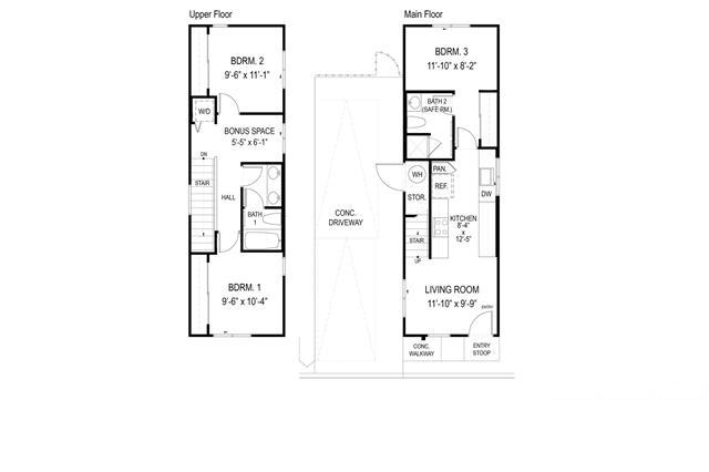 This two story 3-bedroom 2-bathroom detached single family home consists of 919 square feet of net living area and a fully fenced private back yard area. When you step into this home, you will be greeted by the living room that leads seamlessly into the kitchen featuring a bar height seating area, stainless steel appliances and white soft-close cabinets. Also on this floor is a primary bedroom with a closet and ensuite bathroom with a vanity sink and walk-in shower. The second level features a bonus room, perfect for an office, game room, or play area. Also on this floor are two secondary bedrooms and a bathroom with dual vanities and a shower-tub combination. Whole house split air conditioning and modern appliances including a range/oven, micro-hood, dishwasher, refrigerator, and washer/dryer allow for ease of living.