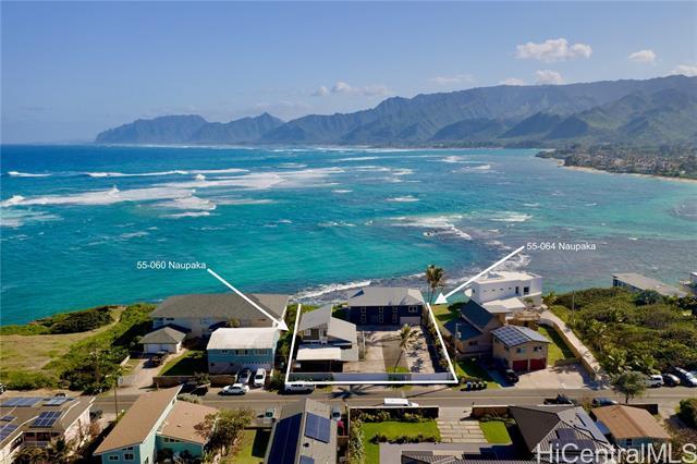 Live your Hawaii dream in this gated oceanfront compound, perfectly situated on the serene Naupaka Peninsula of Laie Point. This sale includes 2 OCEANFRONT HOMES (10 bedrooms, 6 bathrooms) on a large 16,875 sq ft lot. With approximately 100 linear feet of unobstructed ocean frontage, enjoy stunning panoramic views of clear blue ocean, Laie Bay, and the majestic Ko'olau Mountains. Both homes were recently renovated. 55-060 Naupaka Street includes an approximately 1,478 sq ft 3 bedroom 2 bath home + a 1 bedroom 1 bath ohana unit. The larger 55-064 Naupaka Street includes an approximately 3,258 sq ft 7 bedroom 4 bath home & a 2 car garage. Both homes have their own separate individual Tax Map Key (TMK). Rare opportunity to own two adjacent oceanfront homes on the very desirable Laie Point. Very close to BYU, the Polynesian Cultural Center, North Shore beaches, Waimea Bay, Pipeline, & the 5-Star Turtle Bay Resort, farm-to-table restaurants, world class golf, oceanfront horseback riding, walking trails, and helicopter tours. Approximately an hour drive to Honolulu by car or 15 minutes by helicopter from Turtle Bay's Heliport. Very easy to view on short notice! Welcome home to paradise!