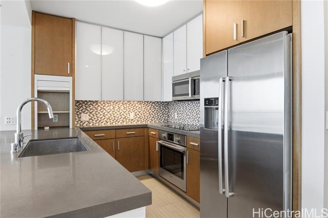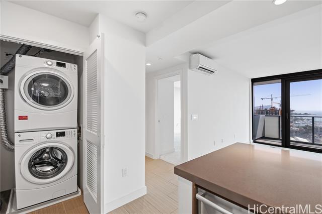 Discover a rare opportunity to own a stunning 1-bedroom, 1-bath condo with a coveted parking space, boasting breathtaking ocean and city views. Located in "The Collection," one of Honolulu's newest condo projects, this home features a spacious modern kitchen equipped with sleek stainless steel appliances and elegant quartz countertops. Enjoy a variety of amenities, including a refreshing pool, a relaxing whirlpool, BBQ cabanas for outdoor gatherings, a well-equipped fitness center, and a club room complete with a full kitchen—perfect for entertaining friends and family. This pet-friendly residence also offers 24-hour security, making it a secure and welcoming environment. Don't miss out on this incredible opportunity—it won't last long! For inquiries, please reach out to TG, Yali Kuang.