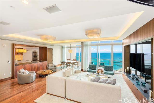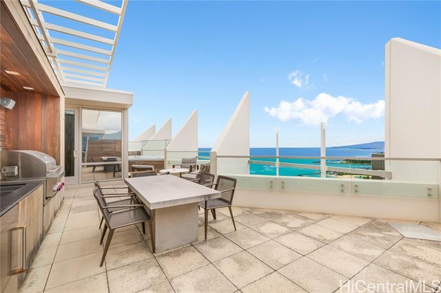 Discover elevated luxury living at Kalai Waikiki, now part of Hilton’s prestigious LXR Resorts collection. This rare Penthouse features 10-foot ceilings, floor-to-ceiling glass, and sweeping, unobstructed ocean views that define world-class island living. Beautifully furnished with custom, high-end designer pieces, the residence blends refined comfort with contemporary elegance. The open living area highlights sophisticated wood paneling, premium finishes, and a dramatic spiral staircase leading to your exclusive private rooftop terrace with a plunge pool, Jacuzzi, and built-in BBQ—an amenity seldom available in Waikiki. As part of its LXR rebranding, Kalai Waikiki is undergoing a full renovation of all common areas, scheduled for completion in early 2026. The transformation will introduce a fully reimagined luxury resort environment, enhancing the appeal and long-term value of this Penthouse. Offering exceptional privacy, elevated design, and seamless resort access in the heart of Waikiki, this one-of-a-kind residence stands as a premier opportunity within Kalai Waikiki’s newly defined ultra-luxury experience.