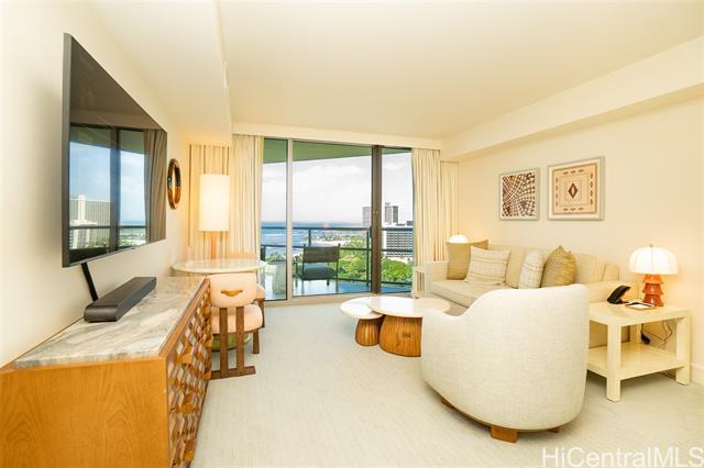 Experience elevated island living at Ka La'i Waikiki Beach, (formerly Trump International Hotel Waikiki), a 5-star luxury condo-hotel in the heart of Waikiki. This high-floor, fully furnished studio offers breathtaking, ocean views overlooking the lush greenery of Fort DeRussy Park, with beautiful sunsets enjoyed from your private lanai. Turnkey and elegantly appointed, the residence features high-end appliances, granite countertops, kitchenware, bath amenities, and linens—ready for immediate enjoyment or rental. The unit has already paid its renovation assessment in full, offering added value and peace of mind. World-class amenities including an infinity-edge pool and jacuzzi, spa, fitness center, concierge, valet parking, dining, business center, room service. Maintenance fees include internet, cable TV, water, sewer (electricity billed separately). Just steps from the white sands of Waikiki Beach and surrounded by premier shopping and dining, this residence may be enjoyed as a personal retreat or enrolled in the hotel rental program for income potential. For a video tour of this unit, please see the video link provided above.