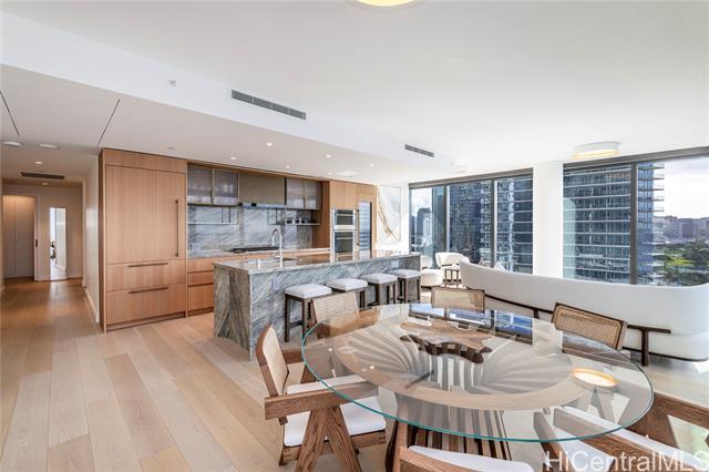 Searching for the ideal blend of luxury and convenience? Welcome home to Victoria Place, Ward Village's newest development. Situated on the Diamond Head corner of the building, the preferred '00 stack offers unparalleled ocean views that only the front row can offer. Finished in the light palette, unit 1800 offers Sub-Zero & Wolf appliances, Studio Becker cabinetry, American Walnut hardwood flooring, and a Japanese-style wet room. Make your way down to the 5th level amenity deck where you are presented with first class amenities that rival most resorts. Residents have exclusive access to a lap pool, sunset infinity pool, Men's & Women's Spa, wine room, fitness center, Lauhala Pool House, and much much more! Parking for the unit is situated on the ground floor of the building near the elevator entry. This unit also features a spacious storage unit on the second floor of the parking structure.