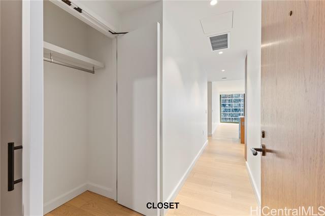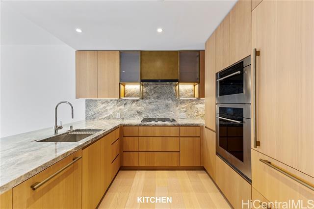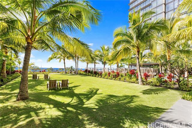 The latest luxury condominium by Howard Hughes is located in the prime area closest to the ocean along Ala Moana Boulevard. Unit 1606 is a 1-bedroom, 1-bathroom residence. From the living room, you can enjoy stunning city views of Ward Village's new condos and glimpses of the ocean. The kitchen is equipped with state-of-the-art appliances, including a wine refrigerator. Both the living room and bedroom feature upgraded motorized shades. The spacious bathroom offers a separate bathtub and shower. Additionally, the seller has upgraded the toilet to the latest Neorest model and enhanced the parking space to accommodate electric vehicles. The condominium boasts a wide variety of amenities. On the first floor, there is an exclusive clubhouse available for private use. The amenity deck includes two pools (one being an infinity pool), a gym, an exercise studio, BBQ facilities, a sauna with a cold plunge, a wine room, and a theater room.